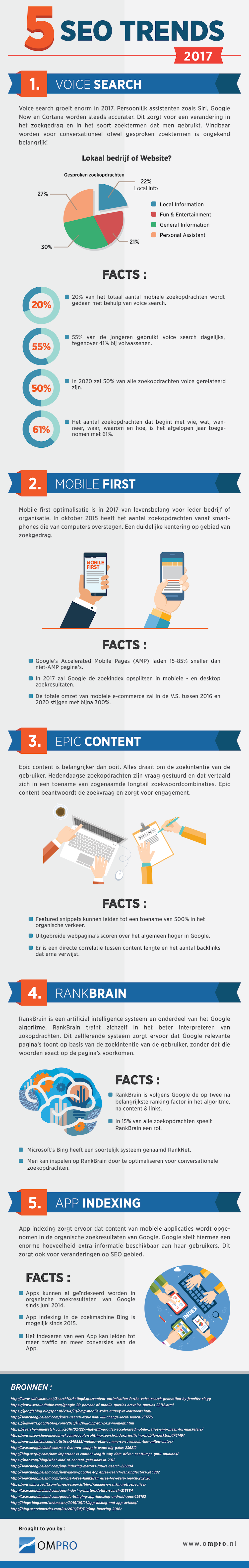 Bovenstaande informatie was eigenlijk maar een tipje van de sluier. Wil je ook meer weten over de 5 SEO trends van 2017? Bekijk dan onderstaande infographic waarin je hier meer over te weten komt. Klik op de infographic om het te vergroten. Succes met jouw SEO strategie in 2017!